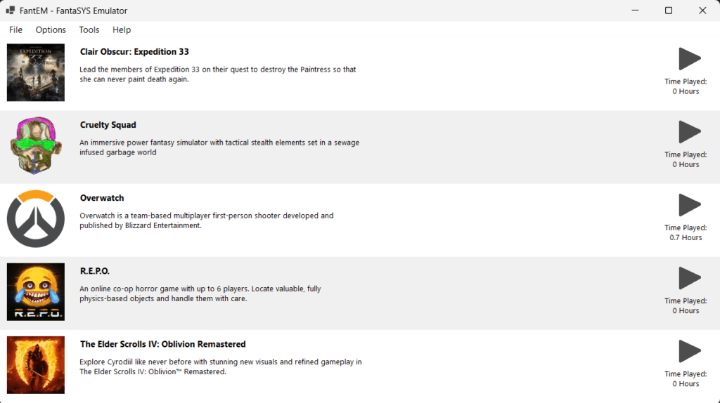An optional game launcher that simulates the emulation of a pseudo-console. Supports all future games of mine to form a cohesive feeling. (C#)
